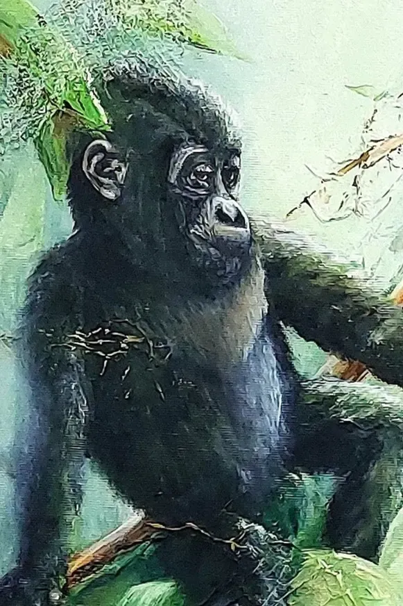 Zwei verspielte, jugendliche Gorillas, die voller Freude und Leichtigkeit ihre Welt entdecken – eine Erinnerung daran, wie wertvoll das Hier und Jetzt ist.