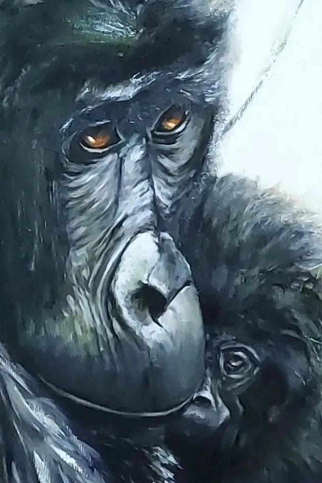 Eine Gorilla-Mutter hält ihr Baby liebevoll im Arm – ein Bild für Fürsorge und Geborgenheit und bedingungsloser Liebe.