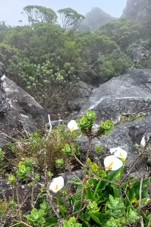 Kurz vor Erreichen der oberen Station wurden wir aber in eine hellgraue Nebelmasse gehüllt. Vorher hatten Max und Angestellte der Cable Car uns noch Hoffnung gemacht, dass die leichten Wolken, die schon vorher oben zu sehen gewesen waren, sich verziehen würden. Leider waren sie eher dicker geworden, so dass Max uns oben immer nur erzählen konnte, was man unten von unserer aktuellen Position aus theortisch sehen könnte.