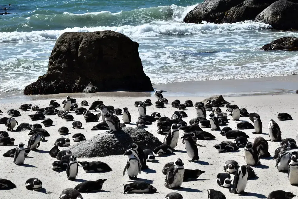 Am zweiten Tag starteten wir auf eine Tour zum Kap der guten Hoffnung. Auf dem Weg dahin statteten wir den Pinguinen in Boulders Beach einen Besuch ab. Dieser Strand liegt gar nicht weit von Kalk Bay, unserem Wohnort, entfernt. Auf diesen Besuch hatte ich mich besonders gefreut: Pinguine in Afrika sehen!