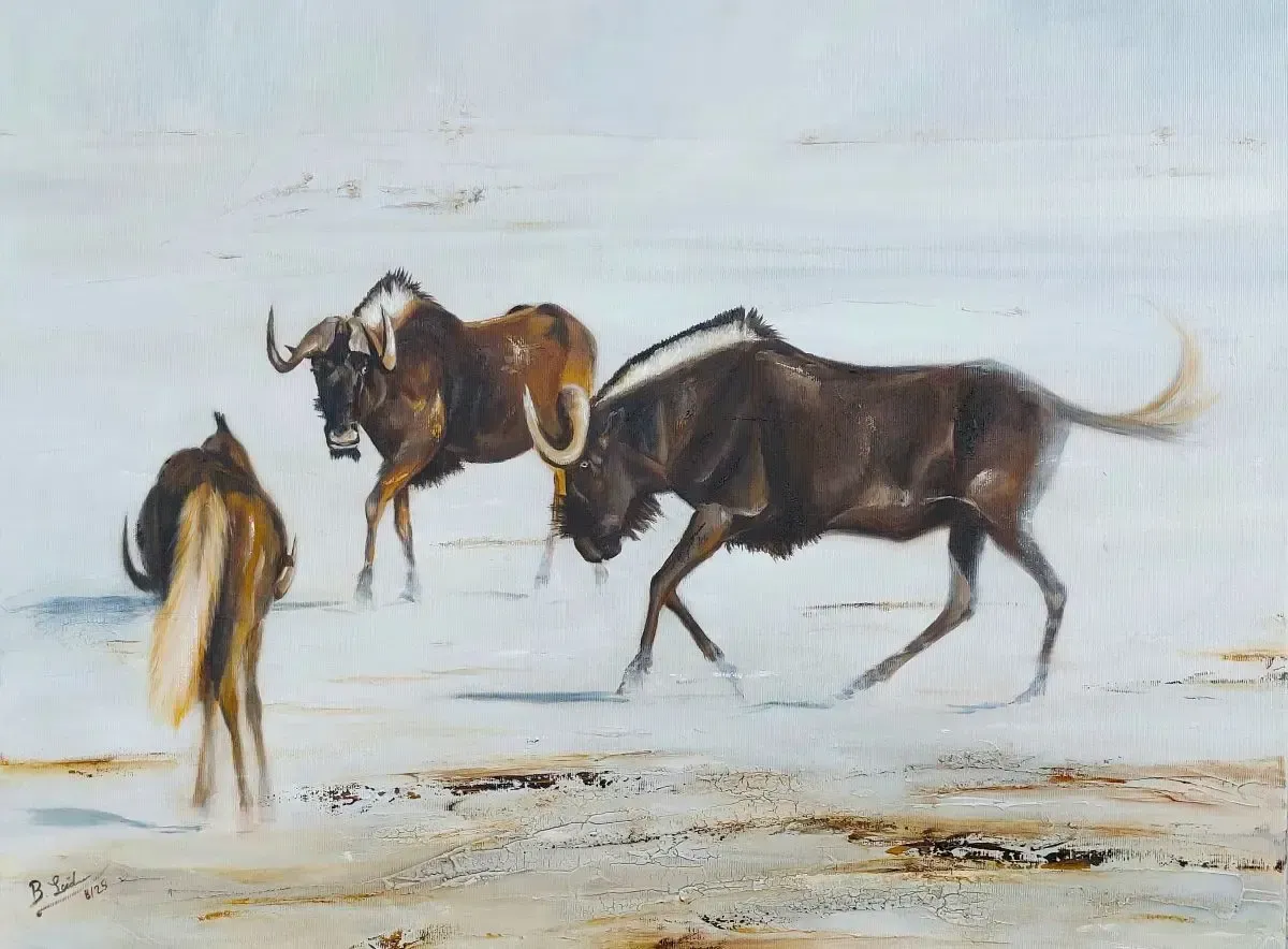 Ein Foto dieser Szene hatte ich vor längerer Zeit auf Instagram bei einem namibischen Wildlife Reservat gesehen und gefragt, ob ich es zum Malen verwenden dürfte.